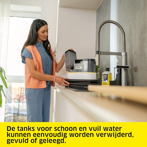 Krachtig en compact: De sproei-extractiereiniger is gemakkelijk te vervoeren en geschikt voor zowel huishoudelijk gebruik als voor de reiniging van het interieur van de automobile