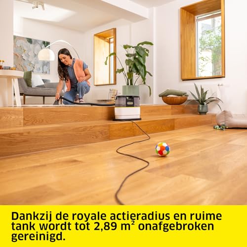 Grote reinigingsradius: De kabel en de zuigslang bereiken een royale werkstraal van 6,3 m, de wasborsteldop reinigt over een breedte van 75 mm