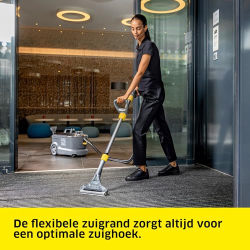Puzzi 10/1 met vloerzuigmond/bekledingszuigmond voor tapijtreiniging/bekledingsreiniging met sproei-extractie; Ideaal voor kleine ruimtes; Met geïntegreerde kabelhaak en bevestiging voor handgereedschap/zuigbuis