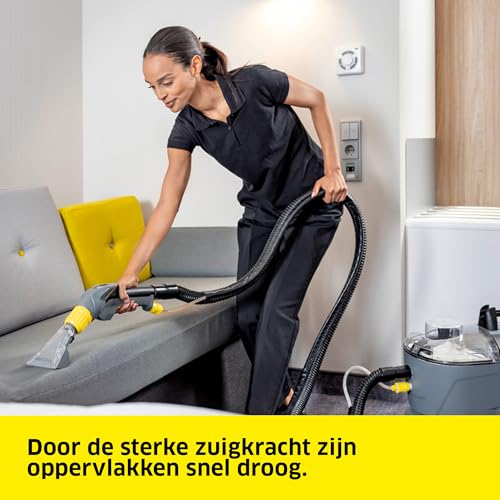 Met een sproeidruk van 1 bar zorgt het sproei-extractieapparaat voor een zachte, diepe reiniging van textieloppervlakken en levert overtuigende resultaten, vooral bij het reinigen van bekleding en tapijten
