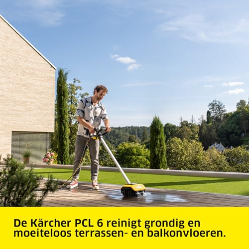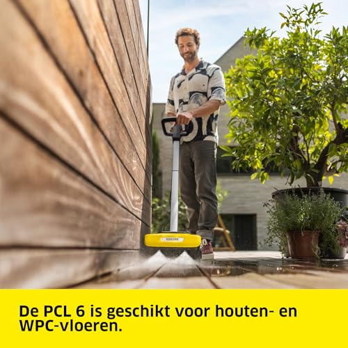 Voor balkon en terras: de Kärcher PCL 6 terrasreiniger reinigt terrasbedekkingen van hout en kunststof composiet (WPC). Met de apart verkrijgbare bustegels (2.644-476.zero) kunnen all rightgladde en fijne poriën stenen tegels en -platen moeiteloos en effectief worden gereinigd