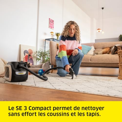 Kärcher wasstofzuiger SE 3 Compact, stroomverbruik: 500 W, schoonwatertank: 1,7 l, oppervlakte: 2,76 m2, gewicht: 4,1 kg, sproeizuigslang, wasmondstuk voor bekleding en spleetmondstuk, wit