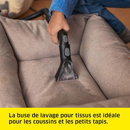 Accessoires: de sproeikop voor de wasbekleding reinigt gestoffeerde meubels. Het mondstuk voor de wasvoegen reinigt tussen kussens en autostoeltjes. De apart verkrijgbare 2-in-1 XXL sproeier is ideaal voor tapijten en grote textieloppervlakken