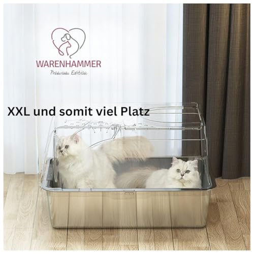 Plaats de eerste recensie voor “Kattenbak – kattenbak XXL Premium – roestvrij staal met deksel – grote opening aan de voorkant – kattenbak met schep B x L x H: 62 x 41 x 40 cm”
