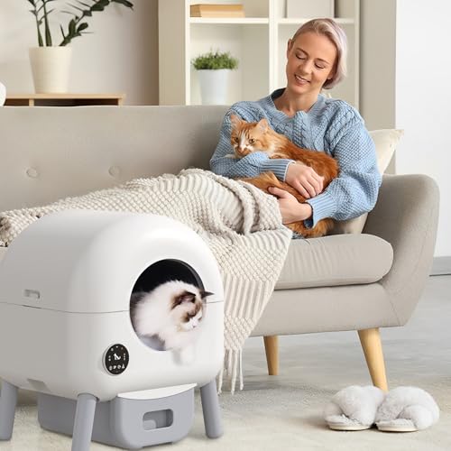 Kattenbak, zelfreinigend, 100 liter, automatische elektrische kattenbak met vuilniszak, app-bediening, veilig alert grote capaciteit, zelfreinigende kattenbak voor meerdere katten