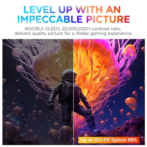Specificaties: KOORUI Gaming-monitor, 68,6 cm (27 inch), 240 Hz, OLED-monitor, pc-schermen, QHD 1440p, 0,03 ms, 90 W, Type-C Charge, DCI-P3 Slim Screen, HDMI 2.0, DisplayPort 1.4, USB-C 3.1, VESA100 x 100 mm, 27E8QK