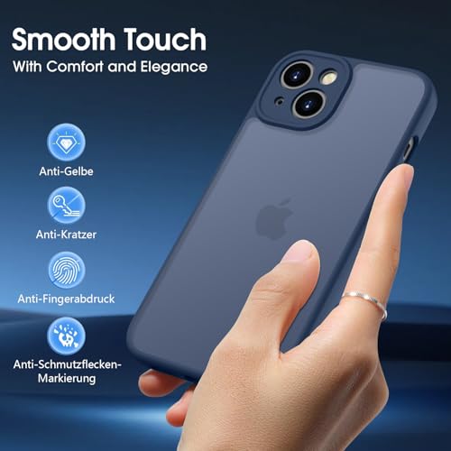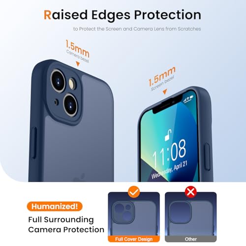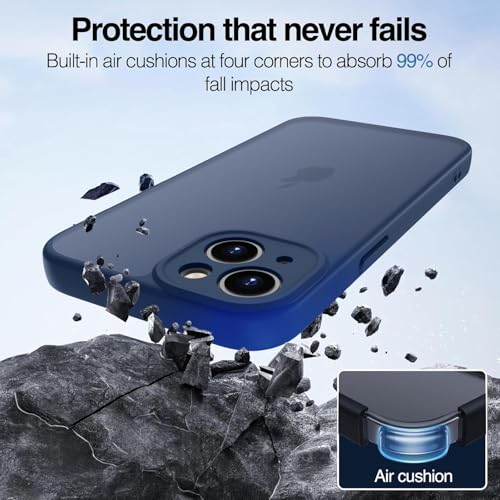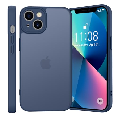 Kukiwhy Hoesje voor iPhone 13, met camerabescherming, stootvast, topkwaliteit, militaire standaard, krasbestendig, doorzichtige achterkant, anti-vingerafdruk, mat hoesje, donkerblauw