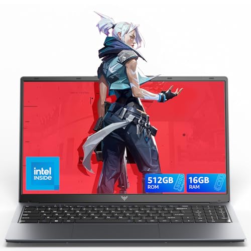 Laptop Computer 16 Inches Full HD 16GB DDR4 512GB SSD Expandable up to 2TB, N97, Camera with Physical Shutter, Long Life, Ideal for Office and Study