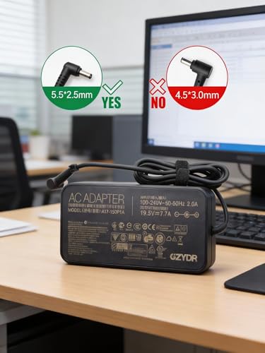 AC-ingang: 100 – 240 V / 50 – 60 Hz DC uitgang: 19,5 V / 7,7 A, vermogen: 150 W, DC plug grootte: 5,5 mm x 2,5 mm (niet 4,5 mm × 3,0 mm, bevestig voor aankoop).