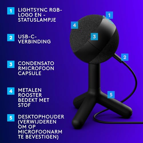 Zo simpel is het: De Logitech G Yeti Orb is een premium RGB-gamingmicrofoon met LIGHTSYNC die geavanceerde audio en gebruiksgemak biedt through een simpele USB-aansluiting.