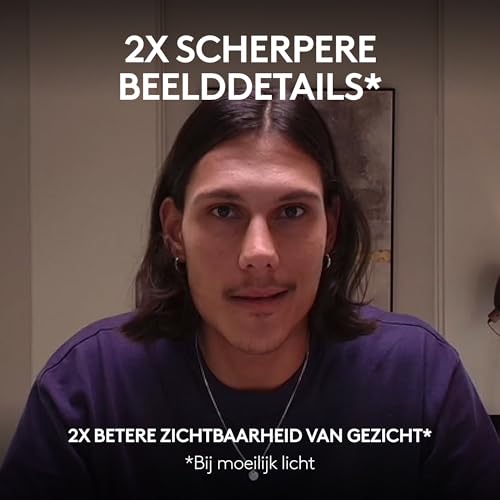 Met AI verbeterde beeldkwaliteit: Ervaar 2x betere zichtbaarheid van gezicht met fijnere beelddetails bij moeilijk licht (2), met automatische belichting, automatische witbalans, ruisonderdrukking en autofocus