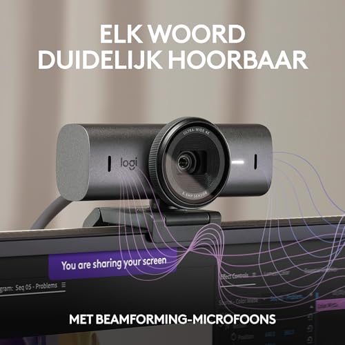 Specificaties: Logitech MX Brio Ultra HD 4K-webcam voor samenwerking en streaming, 1080p bij 60 FPS, dubbele ruisonderdrukkende microfoons, USB-C, webcamcover, werkt met Microsoft Teams, Zoom, Google Meet, Grafiet