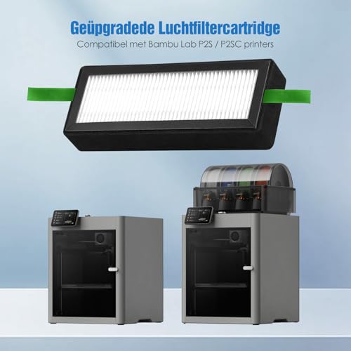 Luchtfiltercartridge 2-pack voor Bambu Lab P2S en P2SC printers zorgt voor schonere lucht tijdens het printen. De combinatie van H13 HEPA- en actieve koolstoffilters vangt effectief fijnstof (PM2.5), ultrafijne deeltjes en geuren op. Dit 2-pack verlengt de levensduur van je printer en verbetert de werkomgeving door schadelijke stoffen te verminderen. De filters zijn makkelijk te vervangen zonder gereedschap, zodat je altijd verzekerd bent van optimale luchtkwaliteit. Vervang ze elke 2 maanden voor het beste resultaat. Specificaties: – Geschikt voor Bambu Lab P2S en P2SC printers – Filtersysteem: H13 HEPA + actieve koolstof – Filtert meer dan 99,95% van de deeltjes groter dan 0,3 micron – Vervangingsinterval: ca. 2 maanden – Inhoud: 2 cartridges + 1 reinigingsborstel Gebruik deze cartridges tijdens het 3D-printen thuis, op kantoor of in werkplaatsen om de lucht schoner en gezonder te houden. Ideaal voor mensen die langdurig in de buurt van de printer werken.