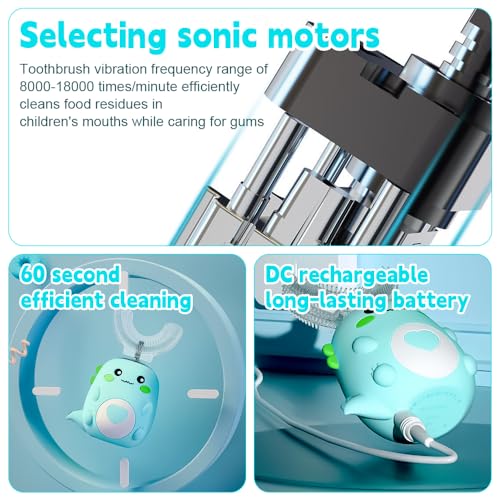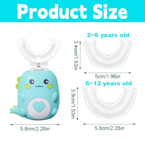 – Een u-vormige elektrische tandenborstel voor kinderen speciaal ontworpen voor peuters en kinderen (2 tot 6 jaar), met zijn schattige cartoonvorm die poetsen in een leuke activiteit verandert. 2-12, biedt een grondige en zachte reiniging zonder het tandvlees te beschadigen