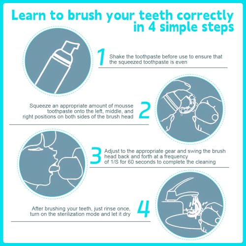 【360° mondreiniging】Deze elektrische U-vormige tandenborstel voor kinderen heeft een unieke U-vorm, die zich aan de mond aanpast en het oppervlak en de binnenkant van de tanden reinigt. Deze 360° tandenborstel voor kinderen reinigt de tanden van je kind 360 graden in alle richtingen, zodat ook kleine melktanden niet worden vergeten en tandplak effectief worden verwijderd.