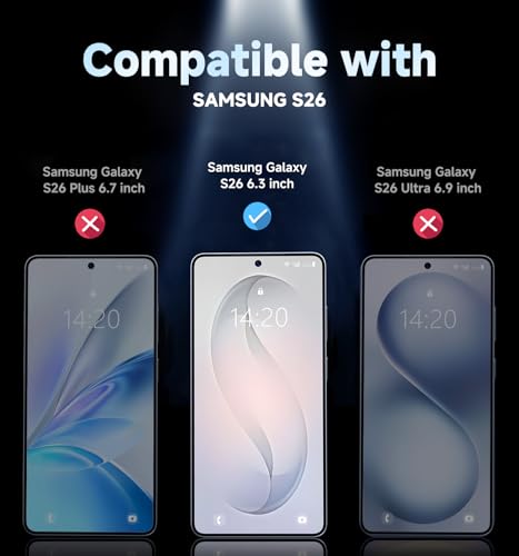 [Kwaliteitsmaterialen] Onze screen protector voor Samsung Galaxy S26 is gemaakt van gehard glas met 9H hardheid, wat 3 keer sterker is dan gewone PET screenprotector, en je scherm effectief kan beschermen tegen stoten en krassen.