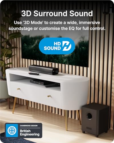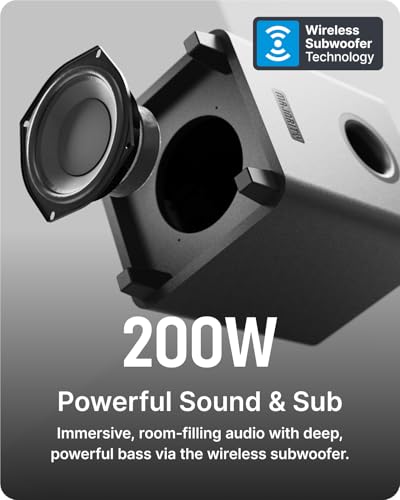 Veelzijdige aansluitingen: Soundbar 2.1, Soundbar Subwoofer: kies tussen AUX, optisch en USB om eenvoudig je television-soundbar aan te sluiten. Geniet van krachtige bassen met de draadloze subwoofer voor een thuisbioscoopervaring.