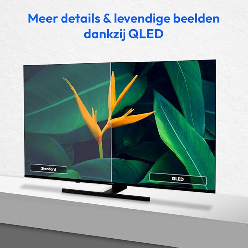 Elegante QLED Smart-tv met HDR10, Dolby Vision, DTS X, DTS HD, Dolby Atmos, MEMC, CI+ interface, wifi, Bluetooth, PVR-ready, mediaspeler, HbbTV, VIDAA App Store, NETFLIX, Disney+, Paramount+ & Amazon Prime Video-app en andere smart-tv-diensten.