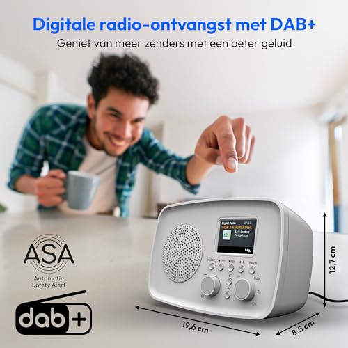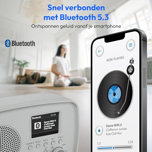 DAB+/FM-ontvangst. ASA-waarschuwingssysteem. Tijdweergave. Bluetooth 5.3 draadloze technologie.