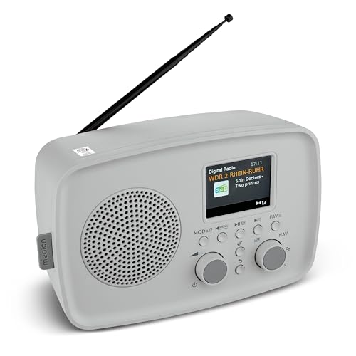 MEDION DAB+ radio met Bluetooth DRE-1 (DAB Plus, FM-radio, druppelbescherming, telescoopantenne, wekker, sluimerfunctie, instelbare display-dimmer, ASA-noodwaarschuwingssysteem), grijs