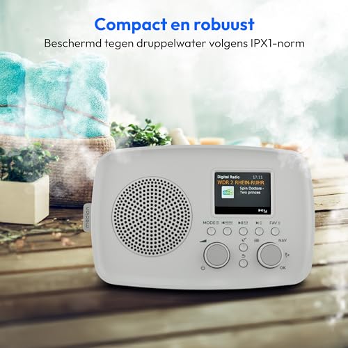Specificaties: MEDION DAB+ radio met Bluetooth DRE-1 (DAB Plus, FM-radio, druppelbescherming, telescoopantenne, wekker, sluimerfunctie, instelbare display-dimmer, ASA-noodwaarschuwingssysteem), grijs