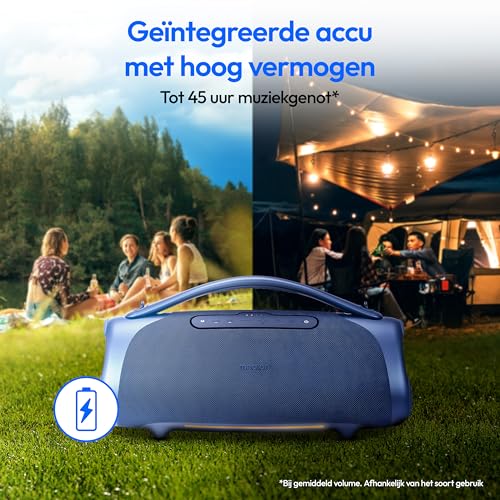 IPX7 – bescherming tegen schade na korte onderdompeling, geïntegreerde powerbank, broadcastmodus – voor een nog krachtiger geluid sluit je andere luidsprekers in deze serie aan, verlichte basradiatoren en lichtstrip met veranderbare RGB-lichteffecten, automatische uitschakeling, totaal 100 W (RMS), (2 x 25 W + 50 W) uitgangsvermogen