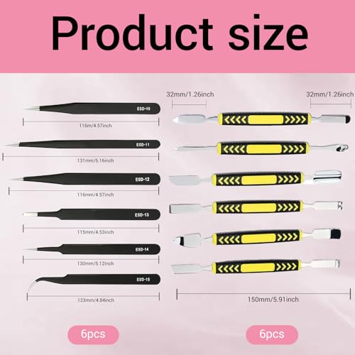 Deze professionele reparatietoolset is een will have to-have voor iedereen die vaak elektronische apparaten repareert. Het biedt alle nodige gereedschappen om je werk te vergemakkelijken, met betrouwbare preybars en precieze pincetten die geschikt zijn voor een breed scala aan reparaties. Het koolstofstalen materiaal van de preybars zorgt voor een stevige constructie en langdurig gebruik, terwijl de ergonomische handgrepen zorgen voor further consolation en controle. De pincetten zijn ontworpen om in krappe ruimtes te komen, wat ze ideaal maakt voor refined taken zoals het openen van behuizingen of het manipuleren van kleine onderdelen. Bovendien is de set lichtgewicht en draagbaar, zodat je altijd klaar bent voor een reparatie, waar je ook bent. Of je nu een professional bent of een doe-het-zelver, deze toolset biedt alles wat je nodig hebt om je elektronische apparaten effectief te repareren.