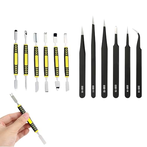 Metalen breekijzenset, Metalen Prey Bar Dubbel Hoofd Demontage Tool Set – Professionele Reparatie Tool Kit met 6 Dubbele Stokken en 6 Pincetten – Ideaal voor Mobiele Apparaten, Laptops en Meer