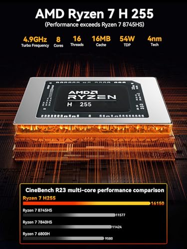 Mini Gaming PC AMD Ryzen 7 H 255 (Support 8745HS, 4.9 GHz), Mini PC barebone Help DDR5, PCIE 4.0 x4, Mini Laptop with USB4.0 | 2.5G LAN | Quad 4K Show | Oculink – for gaming, workplace, and enterprise
