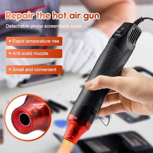 Mini heteluchtpistool 200°C met snel opwarmen zorgt voor efficiënt krimpen van kabels en draden. Ergonomisch, lichtgewicht en antislip voor langdurig gebruik. Inclusief roestvrijstalen draaibare standaard en 328 krimpslangen voor veelzijdige toepassingen.