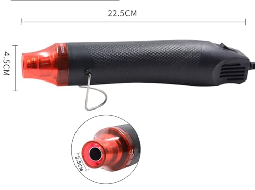 Specificaties: Mini heteluchtpistool, 300W, 22,5 cm, elektrisch heteluchtgereedschap voor doe-het-zelf, verf drogen, stempelen en kleine werkzaamheden, zwart/rood