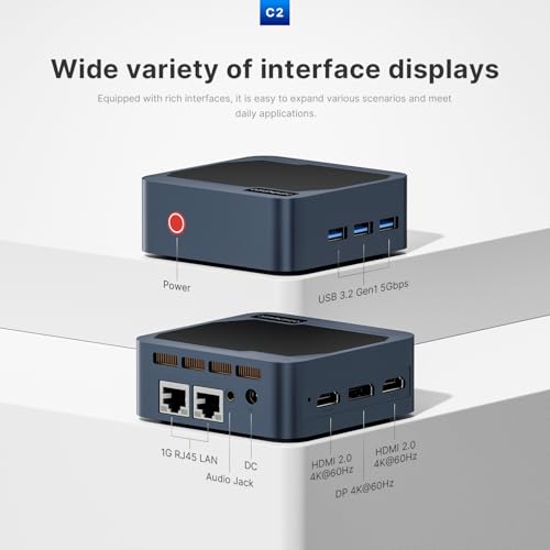 【Complete Interface Design】 The C2 Neo mini PC is provided with three USB 3.2 Gen1 5 Gbps Kind-A ports, one DisplayPort, two HDMI 2.0 4K 60 Hz ports, and two RJ45 2.5G Ethernet ports. This ensures clean operation of design software program and easy storage of inventive belongings.