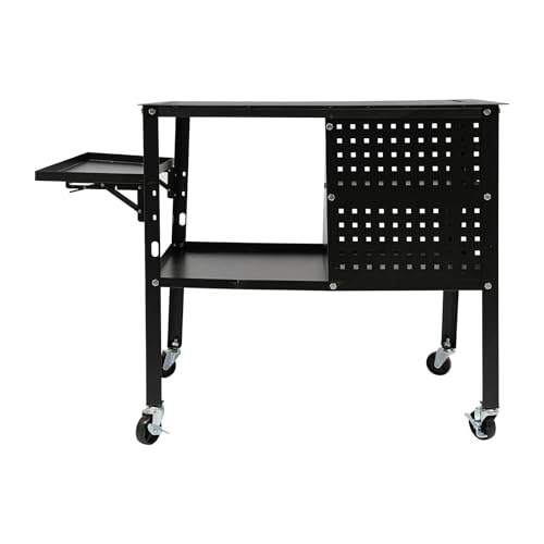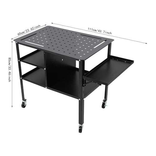 Specificaties: Mobiele werkbank, 111 x 60 x 85 cm lastafel, geperforeerde plaat, verrijdbare werktafel met uitklapbare zijplank, draagvermogen 500 kg, multifunctionele gereedschapstafel, laswagen
