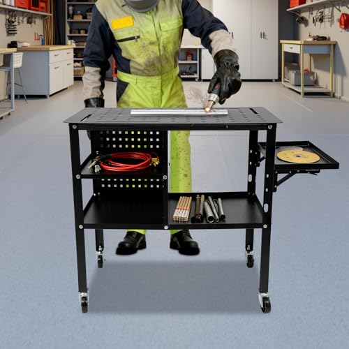 Uitstekend draagvermogen: de lastafel met solide stalen frame draagt tot 1102 lbs voor zware lasapparaten en gereedschappen