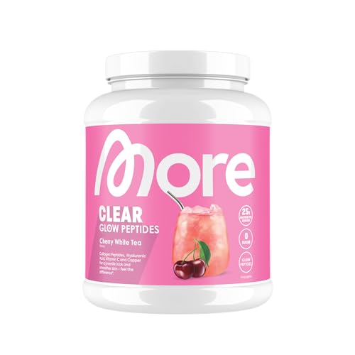 MORE NUTRITION Clear Glow Peptides, Wei-Eiwit Isolaat Poeder, Collageen en Hyaluronzuur, Cherry White Tea, 600 g, 20 porties Clear Whey – Lactosevrij – Poeder voor Spieropbouw en Herstel