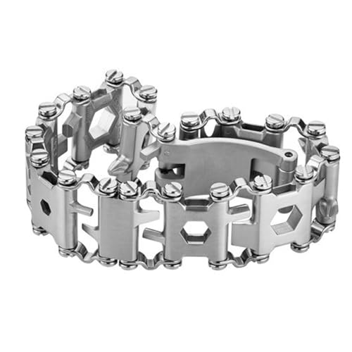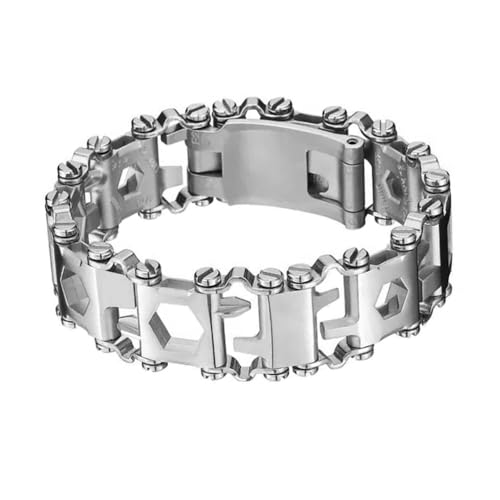 Multitool-armband voor heren – 29-in-1 multifunctioneel armband van roestvrij staal, reisvriendelijk, geschikt voor zeilen, kamperen, wandelen – Zilver, 21 cm