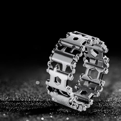 Geweldig cadeau-idee: wordt geleverd met een zwarte multi-instrument armband, schroevendraaier voor het aanpassen van schakels, prachtige doos, instructies en tips – het ideale cadeau voor mannen.