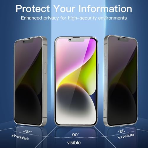 Privacy Screen Protector iPhone 16e 14 13 Pro 6,1 inch biedt 9H gehard glas met anti-spionage filter dat nieuwsgierige blikken blokkeert. Beschermt je scherm tegen krassen en behoudt privacy door de kijkhoek te verkleinen. Eenvoudige, bubbelvrije installatie voor optimale schermbescherming.
