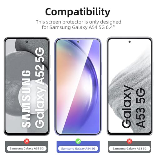 Samsung Galaxy A54 5G screenprotector van 0,33 mm gehard glas beschermt je scherm effectief tegen krassen met een hardheid van 9H. Transparant en met afgeronde hoeken, biedt het hoge touchscreengevoeligheid en ruimte voor de meeste telefoonhoesjes. Eenvoudig en bubbelloos te installeren.