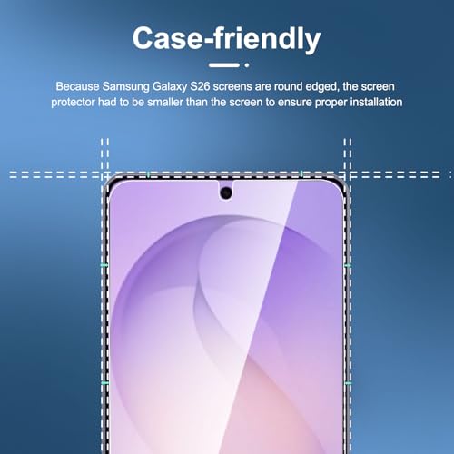 NEW’C Samsung Galaxy S26 Screenprotector van gehard glas, refined aanraking: aan de achterkant gecoat met een stevige siliconenlijm die de installatie eenvoudig maakt en de Film stevig bevestigt om de gevoeligheid van het aanraakscherm niet te beïnvloeden