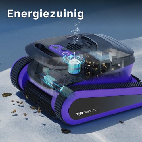 Specificaties: Niya Sonar 50 draadloze robot zwembadreiniger met sonar, quad-borstel en app, voor zwembaden tot 12 m