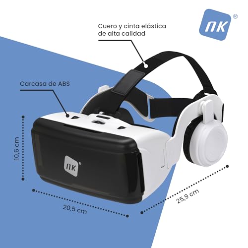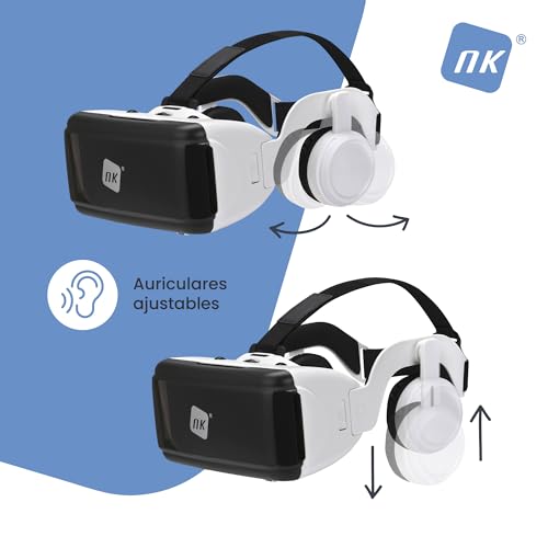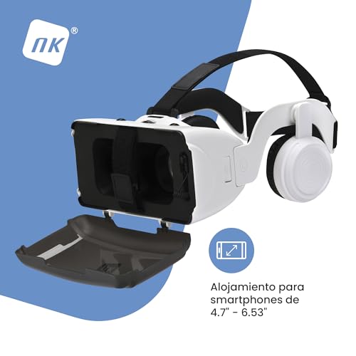NK Intelligente VR-bril met hoofdtelefoon, 3D-virtual realiteit, met audio voor smartphone tussen 11,9 cm (4,7 inch) – 6,53 inch), kijkhoek 90-100 °, 360° draaibaar, lens en pupil verstelbaar, wit