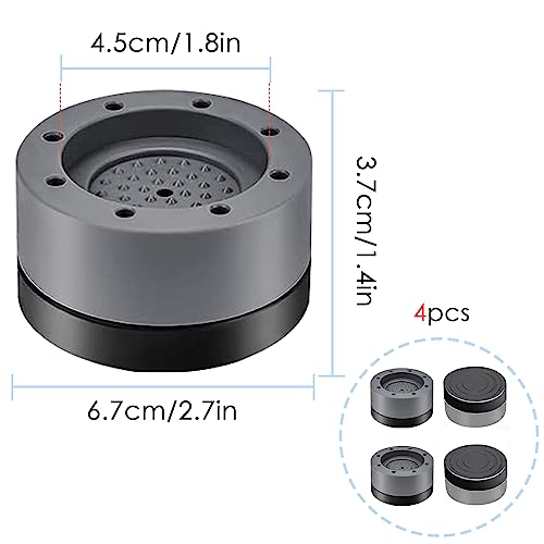 Nutabevr 4 stuks anti-trillingspootjes voor wasmachine, universele pootjes voor wasmachine, trillingsdempers met rubber, schokdempers voor koelkast en droogtrommel, 3,7 cm, grijs