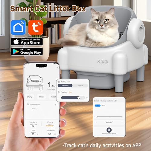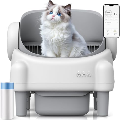 Plaats de eerste recensie voor “Open Top Zelfreinigende Kattenbak, Automatische Kattenbak voor Meerdere Katten met APP Controle, Veiligheidssensor & 2-Roll Kattenvoeringen, Wit & Grijs”
