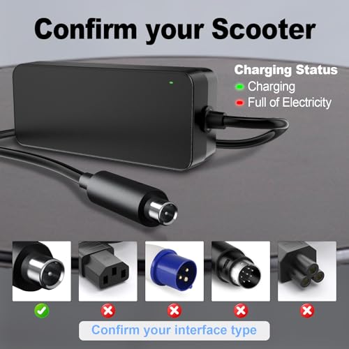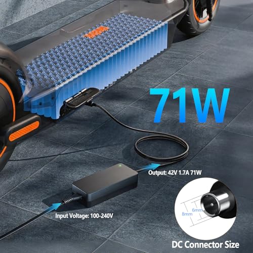 【QYD 42V Voeding met Snelle Lading, Slank, Lichtgewicht Ontwerp】Ingang: one hundred-240V 1,5 (50-60 Hz) / QYD Uitgang voeding: 42V 1.7A. Stekkergrootte: 8,0 × 6,0 mm. (Opmerking: Niet compatibel met 5.five×2.1mm/five.five×2.5mm vat connectoren. Niet voor 24V, 25.2V, 29.4V of 63V batterijen. Niet voor loodzuurbatterijen; Niet compatibel met E2, E2 Plus ekickscooter, F65 versio+ns, Ninebot Max G3D G2D G30P G30M ekickscooter)