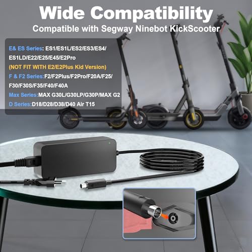 【Just right compatibel met Ninebot Scooters Opladers】QYD 42V Voedingsadapter compatibel met Segway Ninebot electric scooters ES1, ES1L, ES2, ES3, ES4, ES1LD, E22, E25, E45, F20A, F25, F30, F30S, F35, F40, F40A, MAX G30L, G30LP, G30P, MAX G2, D18E, D28E, D28D, D38E, D38D, D40X, F2, F2 Plus, F2 Skilled, Air T15, E2 Skilled