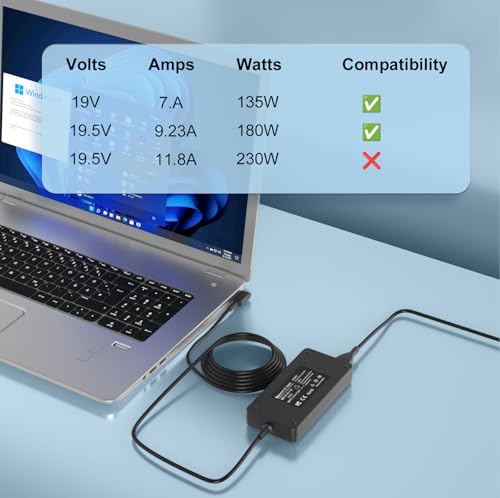 Ingang: 100 ~ 240 V, 50-60 Hz; uitgang: 19,5 V 9,23 A 180 W (compatibel met 19 V 7,1 A 135 W oplader); connectorgrootte: 5,5 mm x 1,7 mm