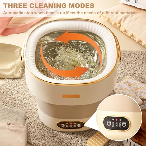 Opvouwbare wasmachine met centrifuge, 15 l volautomatische wasmachine met 3 reinigingsmodi, tourwagen, camping, mobiele wasmachine voor sokken, ondergoed, babykleding, crèmekleurig