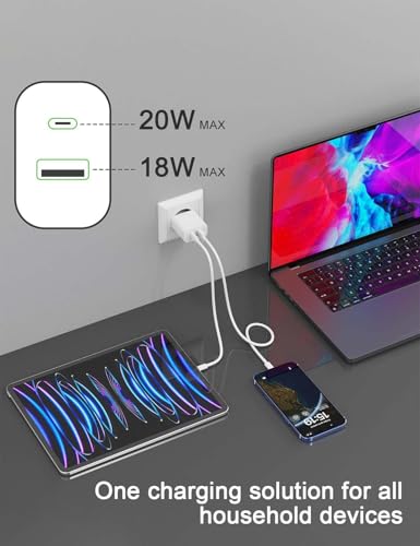 OWYELO USB C Charger 20W 4 Pack, 2 Snellader 2 Poorten usb-c Oplader, Wandoplader voor iPhone 16, 16 Plus, 16 Pro Max, 15, 15 Pro, iPad, Galaxy S24, S23 Pixel 9, inclusief 2 kabel van 2 m(USB-C/A)