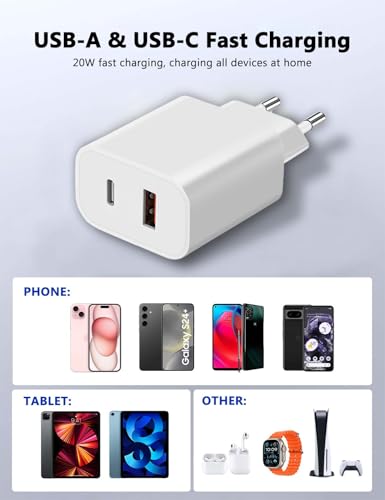 Plaats de eerste recensie voor “OWYELO USB C Charger 20W 4 Pack, 2 Snellader 2 Poorten usb-c Oplader, Wandoplader voor iPhone 16, 16 Plus, 16 Pro Max, 15, 15 Pro, iPad, Galaxy S24, S23 Pixel 9, inclusief 2 kabel van 2 m(USB-C/A)”